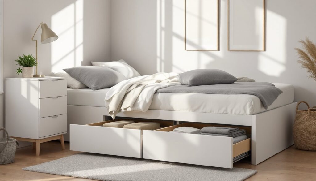 An IKEA queen bed frame with storage solves one of the biggest headaches in modern bedrooms: where do you actually put everything? Blankets, pillows, off-season