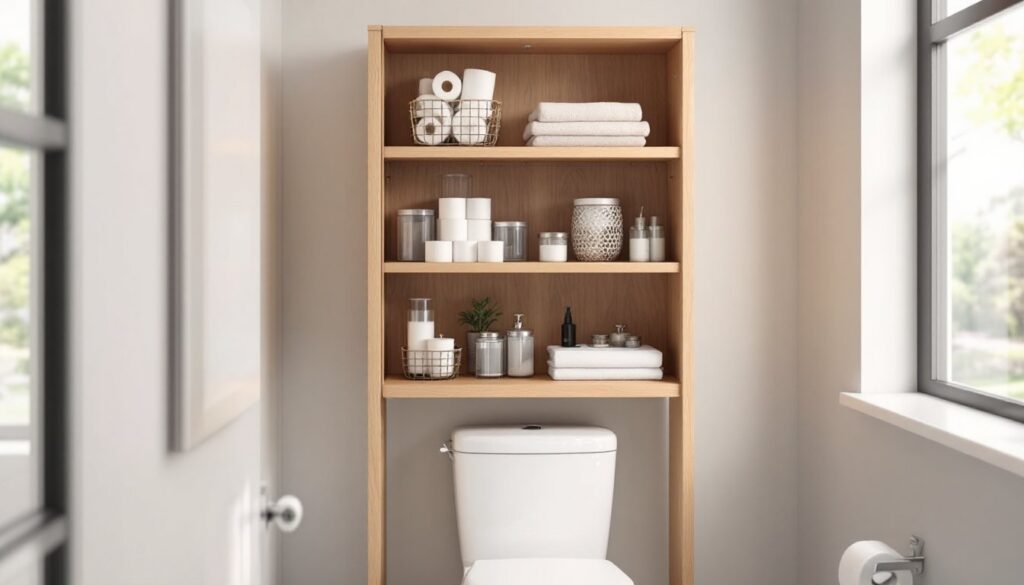 Small bathrooms come with a real challenge: finding storage space that doesn’t eat up precious square footage. The area directly above the toilet is dead
